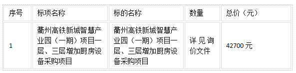 二、項(xiàng)目名稱:衢州高鐵新城智慧產(chǎn)業(yè)園(一期)項(xiàng)目一層、三層增加廚房設(shè)備采購項(xiàng)目