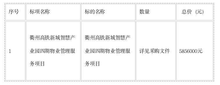 二、項目名稱:衢州高鐵新城智慧產(chǎn)業(yè)園四期物業(yè)管理服務項目