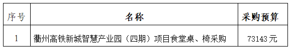 一、采購(gòu)項(xiàng)目名稱:衢州高鐵新城智慧產(chǎn)業(yè)園(四期)項(xiàng)目食堂桌、椅采購(gòu)。