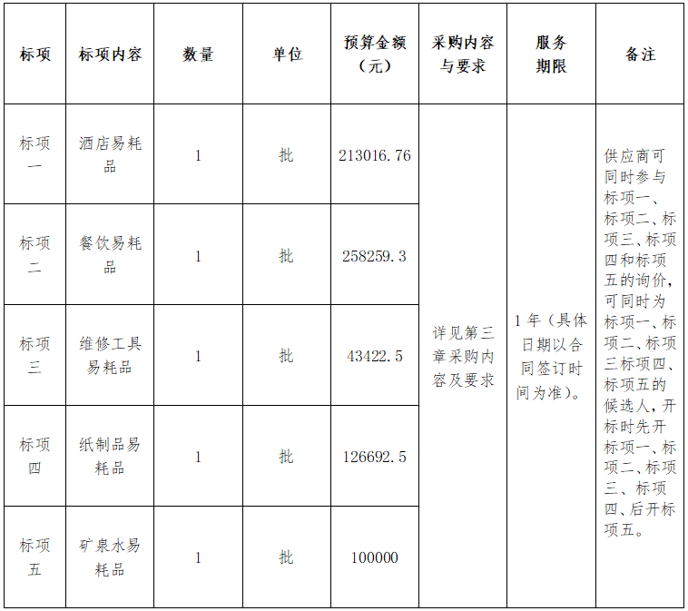注:本項(xiàng)目的詢(xún)價(jià)文件須分標(biāo)項(xiàng)一、二、三、四、五分別制作。