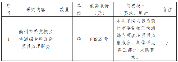 根據(jù)《衢州市國有企業(yè)采購管理辦法(試行)》規(guī)定并參照《中華人民共和國招標(biāo)投標(biāo)法》、《中華人民共和國政府采購法》等有關(guān)規(guī)定,衢州市兩山工程咨詢管理有限公司受衢州市智慧產(chǎn)業(yè)投資發(fā)展有限公司的委托,對衢州市委黨校區(qū)塊海綿專項改造項目監(jiān)理服務(wù)進行詢價采購,歡迎準(zhǔn)時參加。