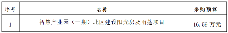 一、采購項(xiàng)目名稱:智慧產(chǎn)業(yè)園(一期)北區(qū)建設(shè)陽光房及雨蓬項(xiàng)目