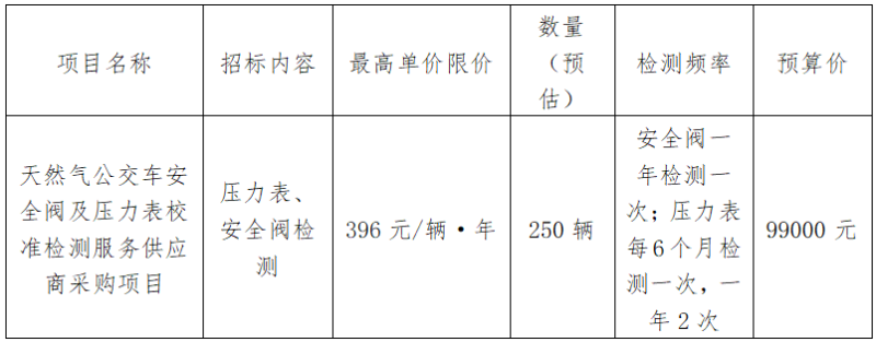 受浙江衢州公交集團(tuán)有限公司委托,現(xiàn)就天然氣公交車(chē)安全閥及壓力表校準(zhǔn)檢測(cè)服務(wù)供應(yīng)商采購(gòu)項(xiàng)目進(jìn)行采購(gòu)。本項(xiàng)目以詢(xún)價(jià)方式進(jìn)行采購(gòu),歡迎合格的供應(yīng)商參加。