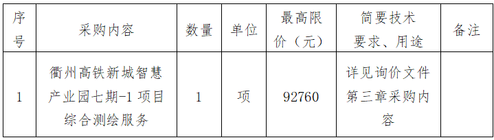 根據(jù)《衢州市國(guó)有企業(yè)采購(gòu)管理辦法(試行)》規(guī)定并參照《中華人民共和國(guó)招標(biāo)投標(biāo)法》《中華人民共和國(guó)政府采購(gòu)法》等有關(guān)規(guī)定,衢州市兩山工程咨詢(xún)管理有限公司受衢州市智慧產(chǎn)業(yè)投資發(fā)展有限公司的委托,對(duì)衢州高鐵新城智慧產(chǎn)業(yè)園七期-1項(xiàng)目綜合測(cè)繪服務(wù)進(jìn)行詢(xún)價(jià)采購(gòu),歡迎準(zhǔn)時(shí)參加。