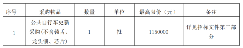 本招標項目2019年公共自行車更新采購項目己經(jīng)批準采購,采購人為衢州通達公共自行車服務有限公司,建設資金來自財政資金,項目已具備招標條件,現(xiàn)對2019年公共自行車更新采購項目進行公開招標,歡迎合格的供應商參加。