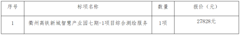 衢州高鐵新城智慧產(chǎn)業(yè)園七期-1項目綜合測繪服務中標(成交)結果公告