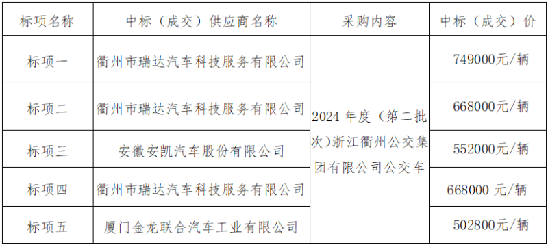 五、采購內(nèi)容:2024年度(第二批次)浙江衢州公交集團(tuán)有限公司公交車(具體詳見招標(biāo)文件)。