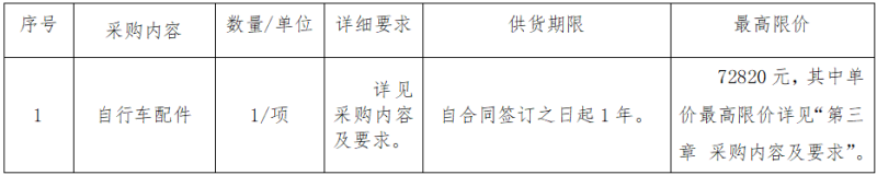二、項目名稱:衢州通達公共自行車服務有限公司自行車配件采購項目