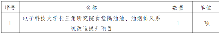 一、采購項(xiàng)目名稱:電子科技大學(xué)長三角研究院食堂隔油池、油煙排風(fēng)系統(tǒng)改造提升項(xiàng)目