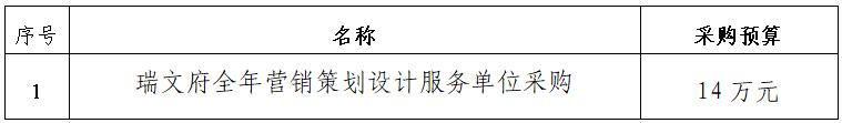 一、采購項(xiàng)目名稱:瑞文府全年?duì)I銷策劃設(shè)計(jì)服務(wù)單位采購詢價(jià)項(xiàng)目