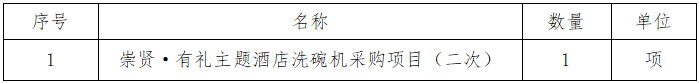 一、采購項目名稱:崇賢·有禮主題酒店洗碗機采購項目(二次)