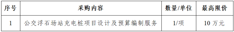 一、采購項(xiàng)目名稱:公交浮石場(chǎng)站充電樁項(xiàng)目設(shè)計(jì)及預(yù)算編制服務(wù)