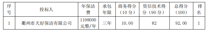 七、中標(biāo)供應(yīng)商名稱(chēng):衢州市天好保潔有限公司