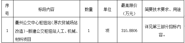二、項(xiàng)目名稱:衢州公交中心樞紐站(原農(nóng)貿(mào)城場站改造)-新建公交樞紐站人工、機(jī)械、材料項(xiàng)目