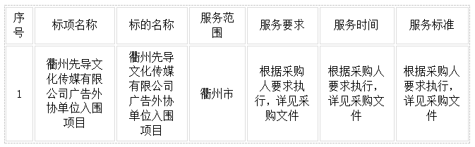 二、項目名稱:衢州先導文化傳媒有限公司廣告外協(xié)單位入圍項目