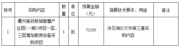 附件:衢州高鐵新城智慧產(chǎn)業(yè)園(一期)項(xiàng)目一層、三層增加廚房設(shè)備采購項(xiàng)目