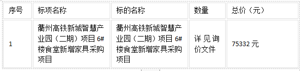 二、項目名稱:衢州高鐵新城智慧產業(yè)園(二期)項目6#樓食堂新增家具采購項目