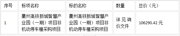 二、項目名稱:衢州高鐵新城智慧產(chǎn)業(yè)園(一期)項目非機(jī)動停車棚采購項目