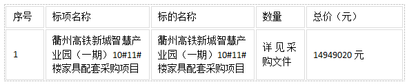 二、項(xiàng)目名稱:衢州高鐵新城智慧產(chǎn)業(yè)園(一期)10#11#樓家具配套采購項(xiàng)目