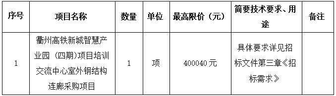 項目名稱:衢州高鐵新城智慧產業(yè)園 (四期)項目培訓交流中心室外鋼結構連廊采購項目
