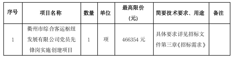 項目名稱:衢州市綜合客運樞紐發(fā)展有限公司黨員先鋒崗實施創(chuàng)建項目