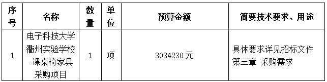 采購人名稱:電子科技大學(xué)衢州實(shí)驗(yàn)學(xué)校