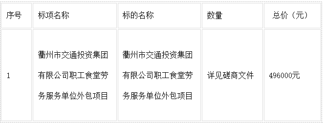 二、項目名稱:衢州市交通投資集團(tuán)有限公司職工食堂勞務(wù)服務(wù)單位外包項目