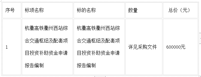 二、項目名稱:杭衢高鐵衢州西站綜合交通樞紐及配套項目投資補助資金申請報告編制