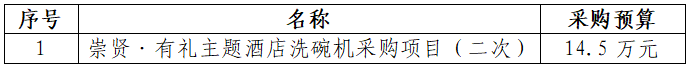 一、采購項目名稱:崇賢·有禮主題酒店洗碗機采購項目(二次)