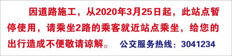 二、公交車停靠站。關注站牌線張貼關于線路調(diào)整的溫馨提示(例如下圖)