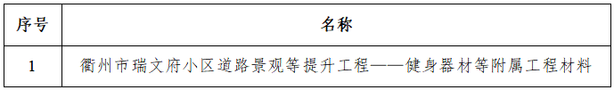 一、采購項目名稱:衢州市瑞文府小區(qū)道路景觀等提升工程——健身器材等附屬工程材料采購項目
