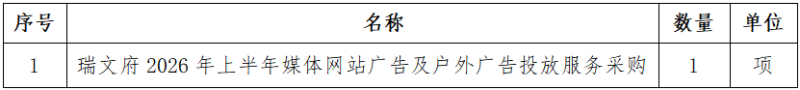 一、采購項(xiàng)目名稱:瑞文府2026年上半年媒體網(wǎng)站廣告及戶外廣告投放服務(wù)采購