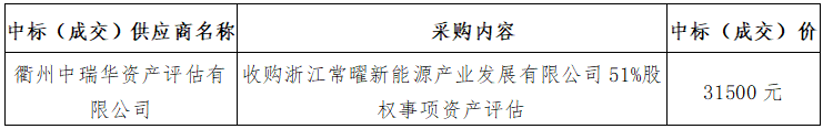 五、采購內(nèi)容:收購浙江常曜新能源產(chǎn)業(yè)發(fā)展有限公司51%股權(quán)事項(xiàng)資產(chǎn)評(píng)估。