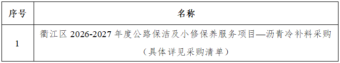 一、采購項目名稱:衢江區(qū)2026-2027年度公路保潔及小修保養(yǎng)服務項目——瀝青冷補料采購