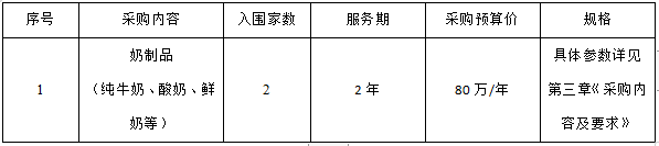 項目概況:浙江衢州公交集團有限公司就浙江衢州公交集團有限公司奶制品定點采購項目,擬入圍各2家供應(yīng)商,服務(wù)期二年。
