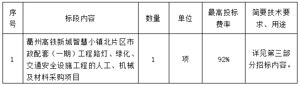 二、項(xiàng)目名稱:衢州高鐵新城智慧小鎮(zhèn)北片區(qū)市政配套(一期)工程路燈、綠化、交通安全設(shè)施工程的人工、機(jī)械及材料采購項(xiàng)目