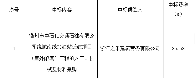 一、項(xiàng)目名稱(chēng):衢州市中石化交通石油有限公司繞城南線加油站遷建項(xiàng)目(室外配套)工程的人工、機(jī)械及材料采購(gòu)