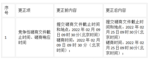 更正事項:競爭性磋商文件截止時間、磋商響應(yīng)時間