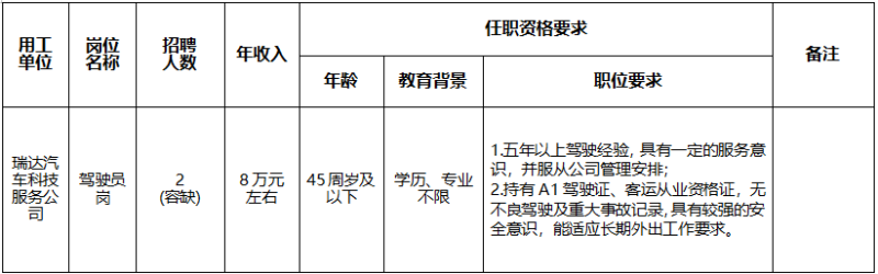 商務(wù)車、客車駕駛員崗2名(容缺)。