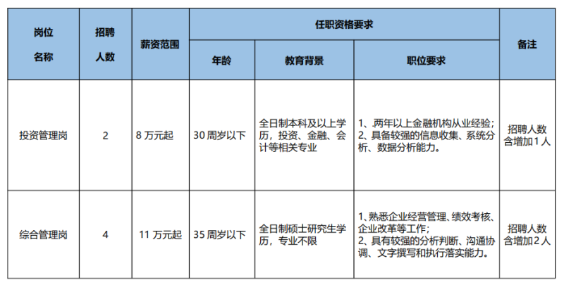 二、調(diào)整部分崗位招聘要求(具體內(nèi)容見下表)