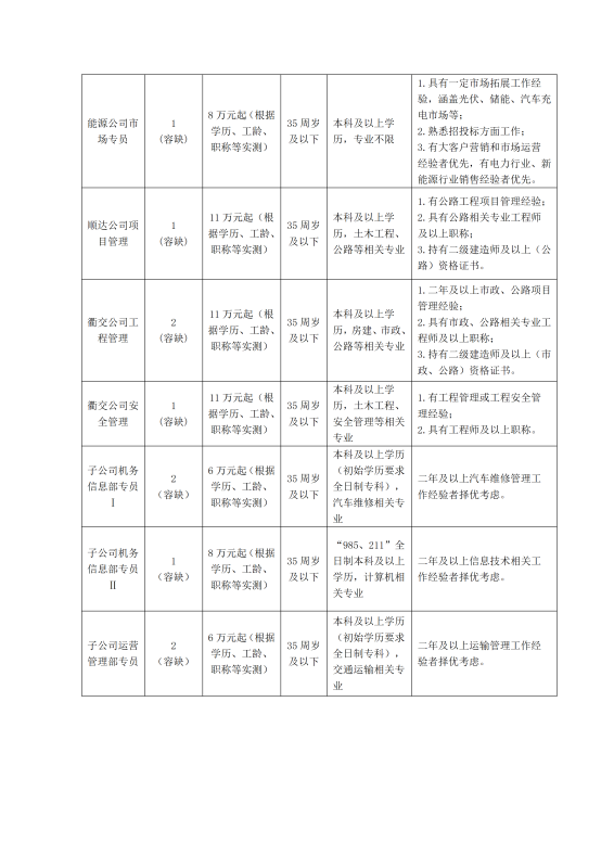 現(xiàn)因集團(tuán)發(fā)展需要,委托衢州市慧城人才開發(fā)有限公司(以下簡稱慧城人才公司)面向社會公開招聘21名工作人員,具體工作單位由集團(tuán)根據(jù)工作需要,在集團(tuán)本部和下屬子公司之間統(tǒng)籌安排。具體招聘事項公告如下: